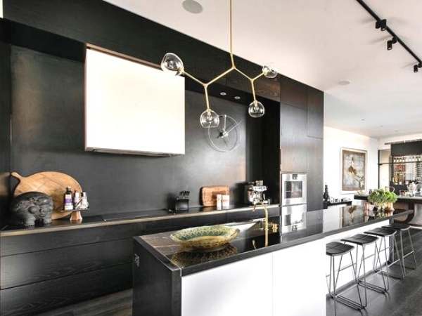 One way to add interest and light to a small kitchen is to use layered lariats. This involves using several pendants or chandelier lights at different heights. The effect is both dramatic and efficient, as it makes use of the vertical space in the room.